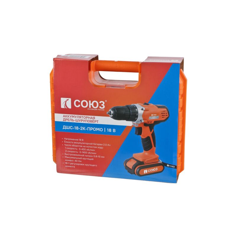 Аккумуляторный шуруповерт СОЮЗ ДШС-18-2К-ПРОМО, ДШС-18-2К-ПРОМО