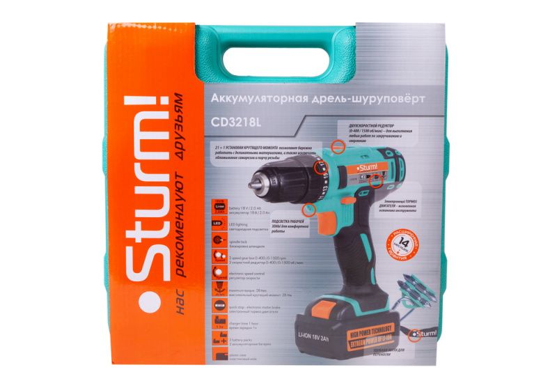 Аккумуляторный шуруповерт Sturm CD3218L 2019, CD3218L