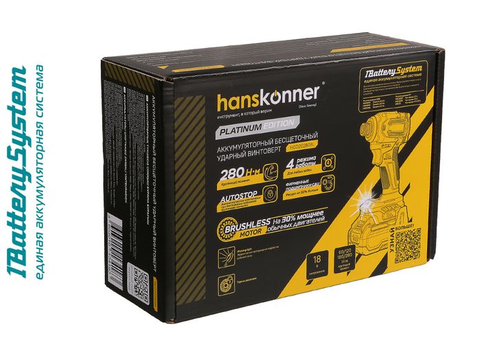 Аккумуляторный ударный винтоверт Hanskonner HCD20280BL 1BatterySystem, HCD20280BL