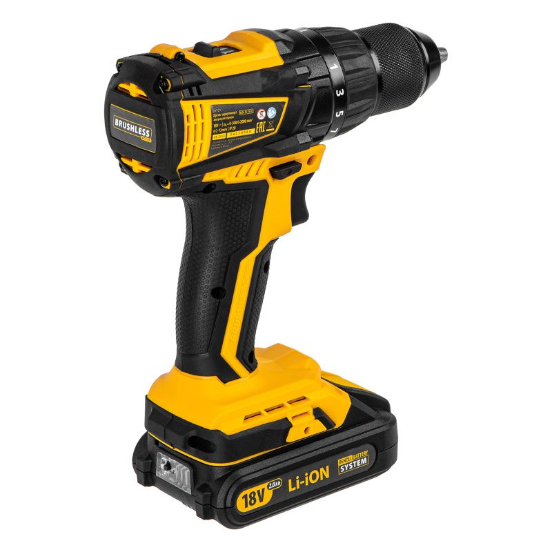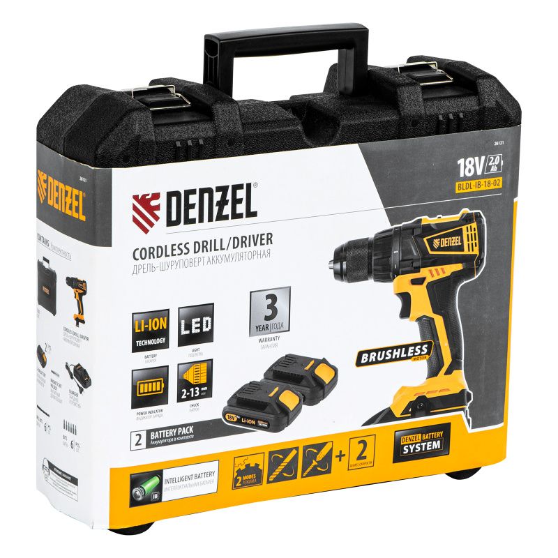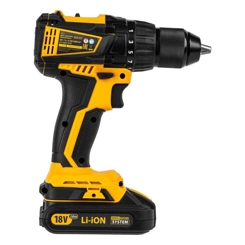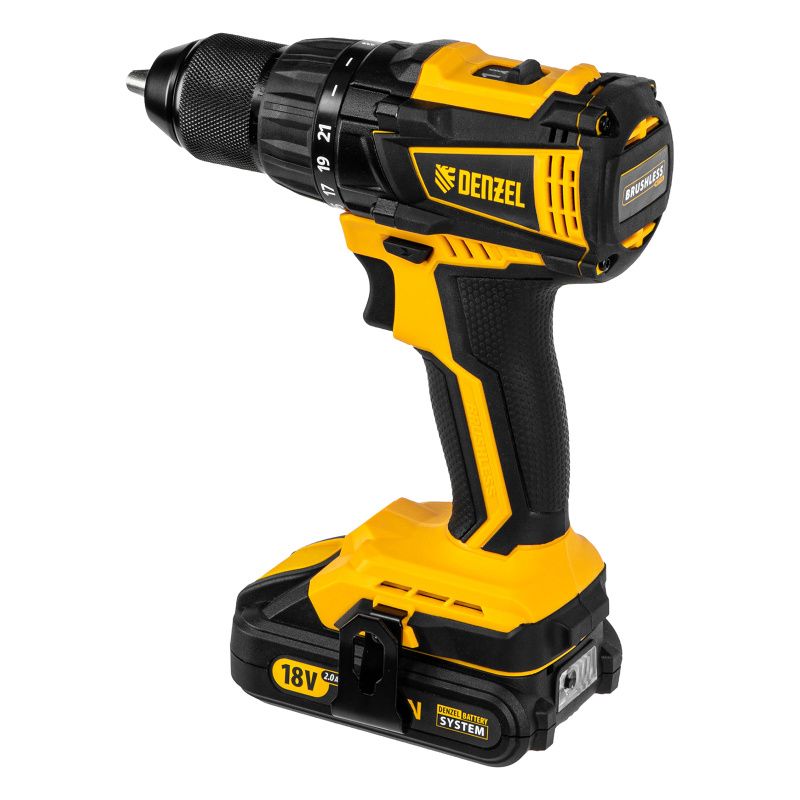 Дрель-шуруповерт аккумуляторная Denzel, бесщет. BLDL-IB-18-02, 26121