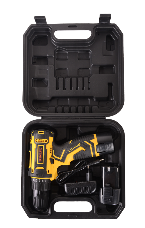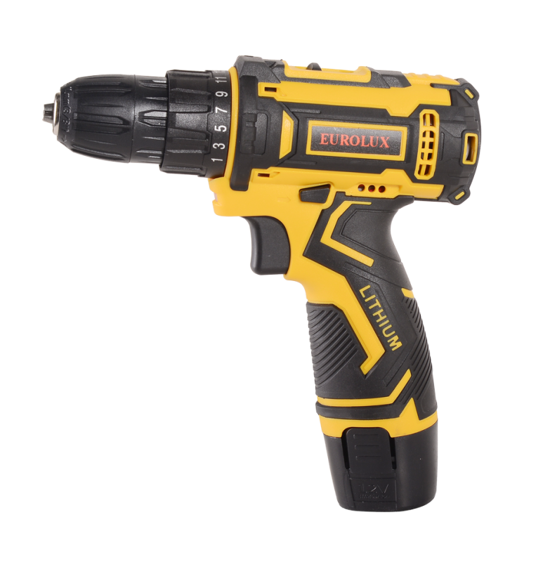 Аккумуляторная дрель-шуруповерт Eurolux ДА-12/2Li – ручной электроинструмент с регулируемым крутящим моментом, предназначенный для закручивания и откручивания шурупов, саморезов, винтов и других видов крепежных изделий, а также сверления отверстий в различных конструкционных материалах.