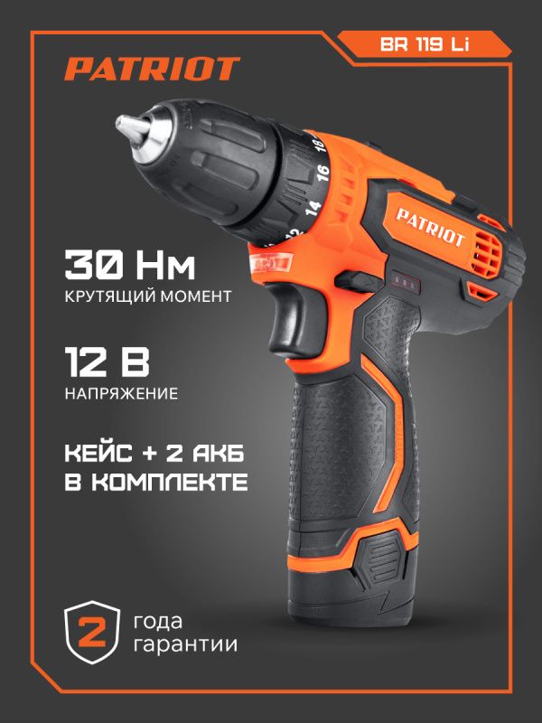 Дрель-шуруповерт аккумуляторная Patriot BR 119 Li, 180301119