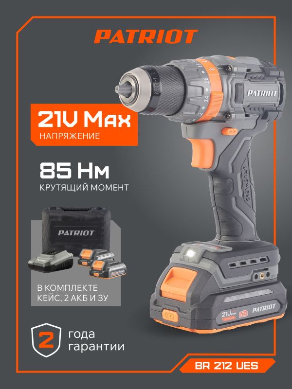 Дрель-шуруповерт аккумуляторная PATRIOT BR 212 UES, 180301512