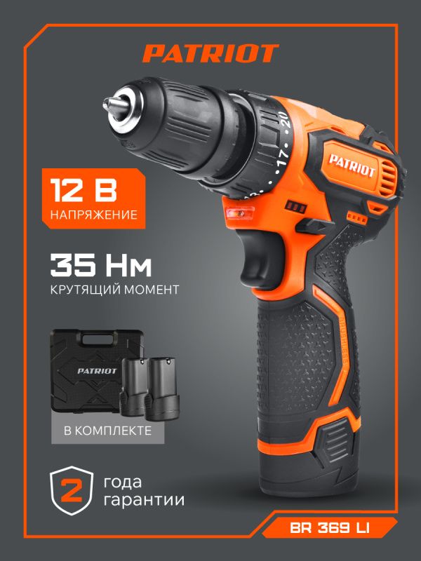 Дрель-шуруповерт аккумуляторная Patriot BR 369Li, 180201369