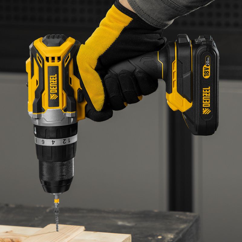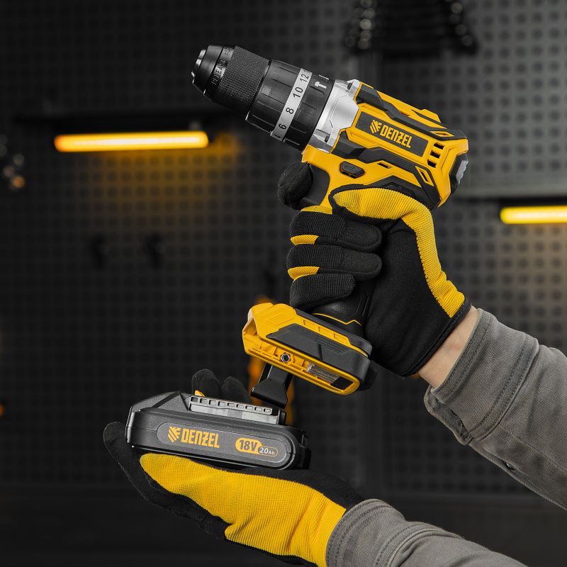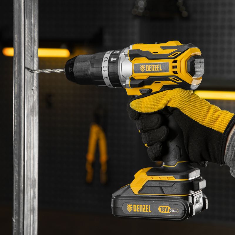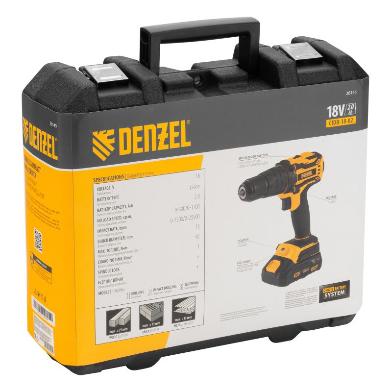 Дрель-шуруповерт аккумуляторная ударная бесщет Denzel CIDB-18-02, 26145