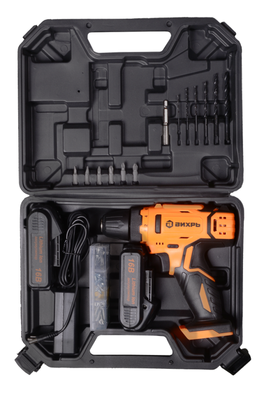 Дрель-шуруповерт Вихрь ДА-16Л-2КА с набором оснастки 65 предметов, 72/14/49