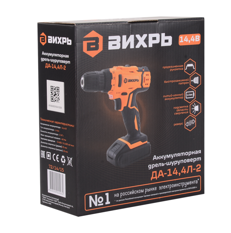 Дрель-шуруповерт Вихрь ДА-14,4Л-2, 72/14/15