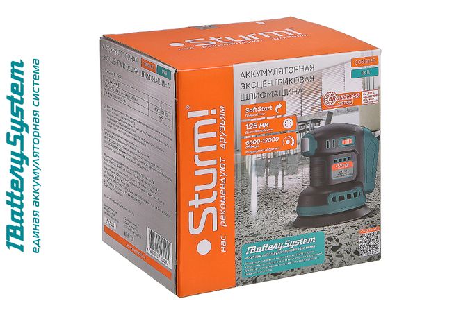 Аккумуляторная эксцентриковая шлифмашина б/щ Sturm COS18125 1BatterySystem, COS18125