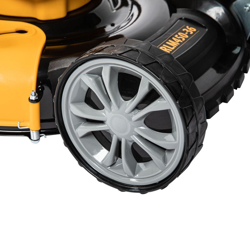 Ширина захвата: газонокосилка Denzel RLM450-36 имеет ширину захвата 45 см., что позволяет быстро и эффективно обрабатывать большие площади газона.