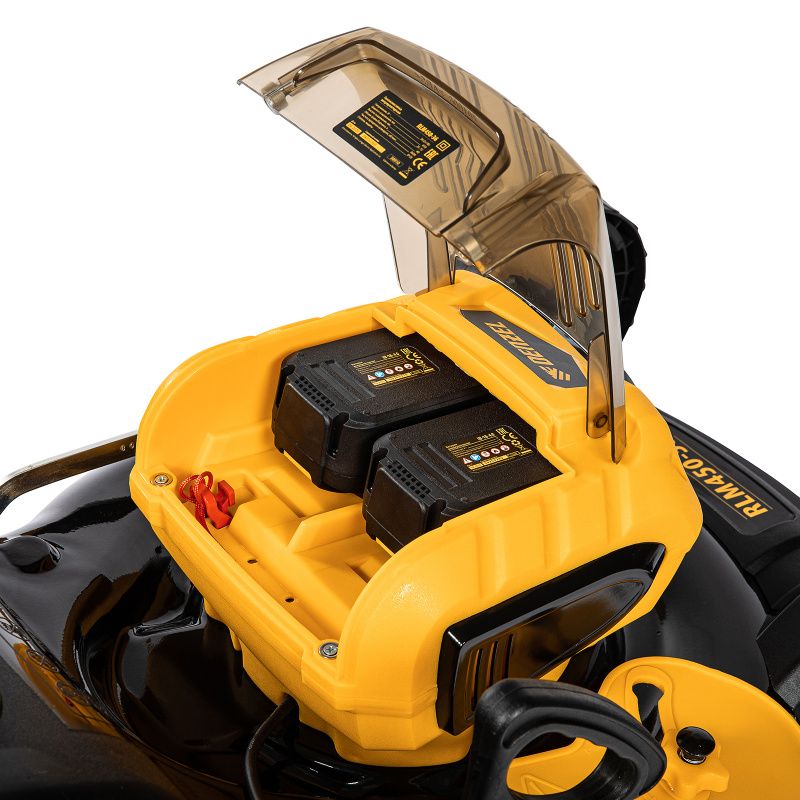| Дополнительные характеристики | работает от двух батарей 18В одновременно_несамоходная |