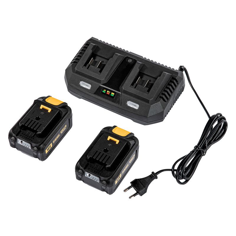 | Комплектация* | газонокосилка в сборе, АКБ 18В - 2 шт, зарядное устройство на 2 аккумулятора, травосборник, боковой дефлектор, инструкция на русском языке, гарантийный талон, упаковка |