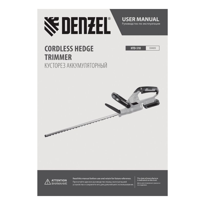 Кусторез аккумуляторный Denzel HTD-510, 59409