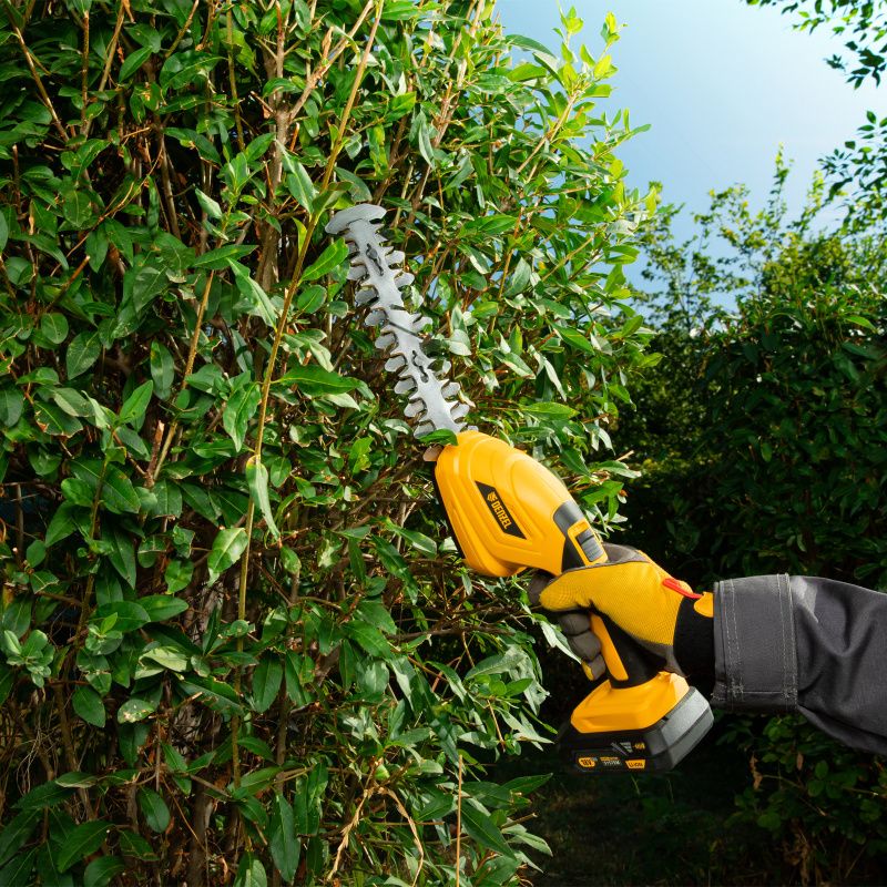 Ножницы-кусторез оснащены острыми и прочными ножами из высококачественной стали, которые легко справляются с резкой и точной обрезкой растений. Благодаря этому, вы сможете получить аккуратные и красивые формы кустов и деревьев, не повреждая их структуру.