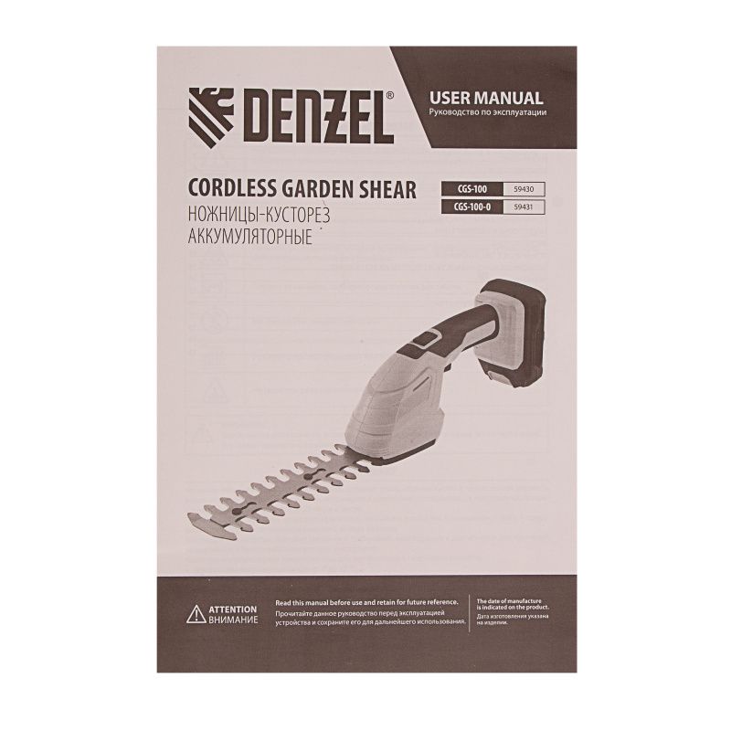 Ножницы-кусторез аккумуляторные Denzel CGS-100, 59430