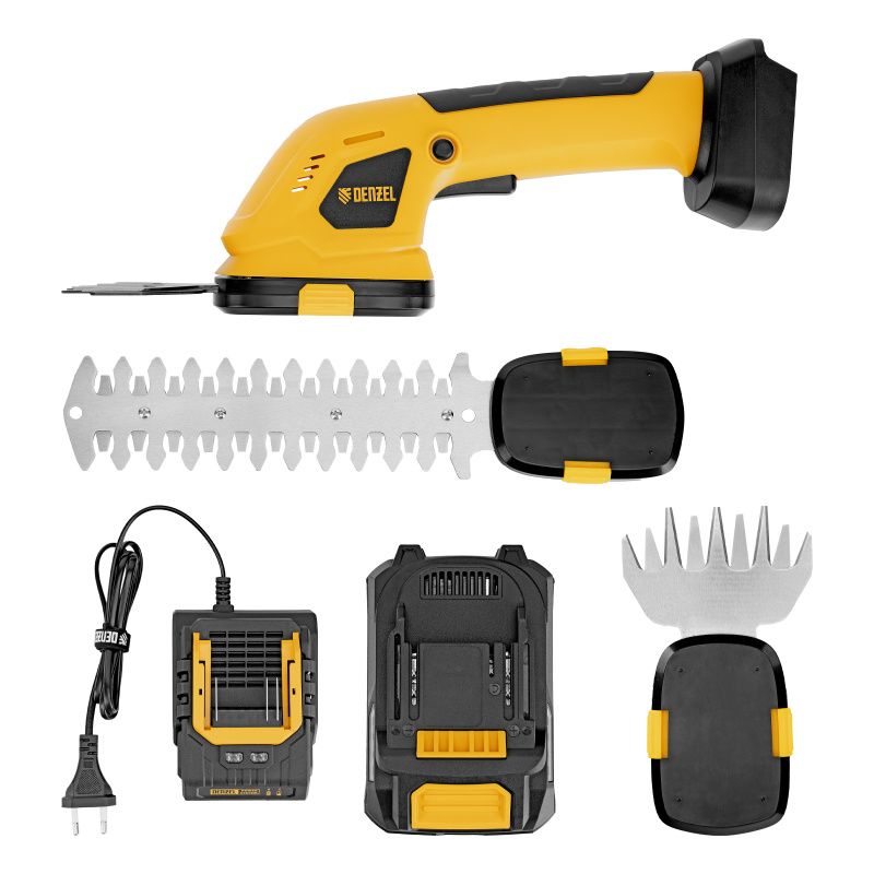 | Комплектация* | ножницы-кусторез аккумуляторные - 1 штлезвия для травы - 1 штлезвия для кустарников - 1 штаккумуляторная батарея denzel system power - 1 штзарядное устройство - 1 штруководство по эксплуатации c гарантийным талоном - 1 шт |