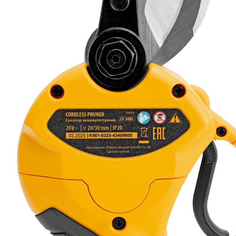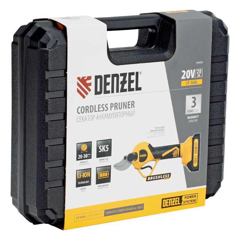 Секатор аккумуляторный, бесщет., CP-30BL, Li-Ion, 20 В, лезвия SK5 // Denzel, 59434