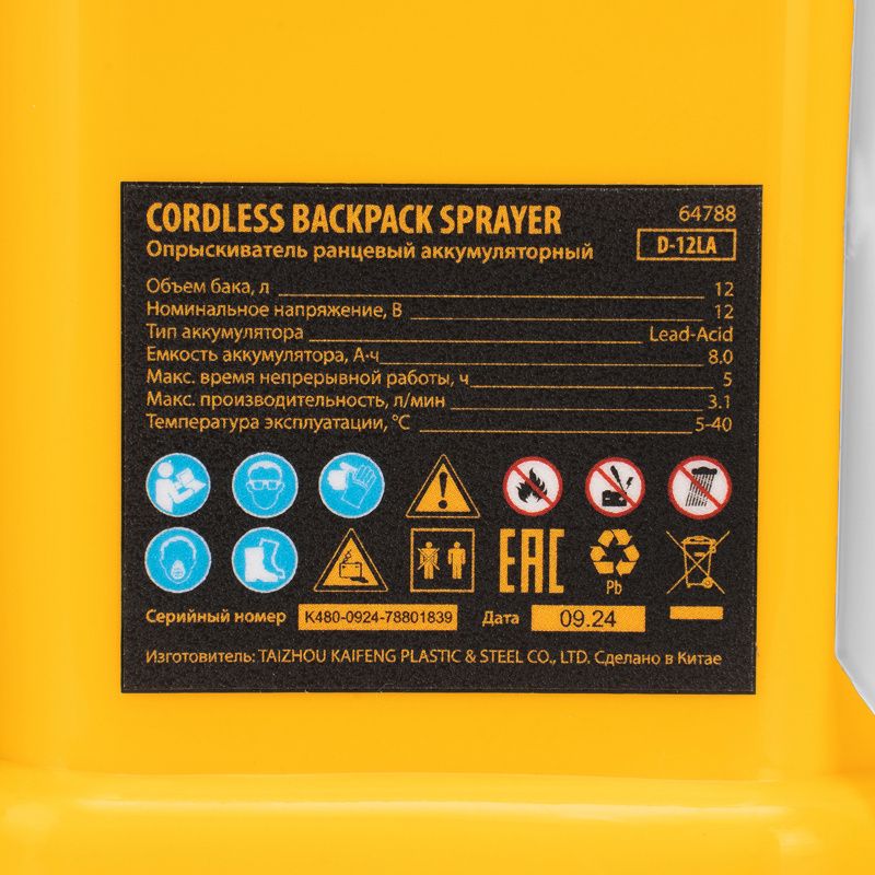 Опрыскиватель ранцевый аккумуляторный Denzel D-12LA, 64788