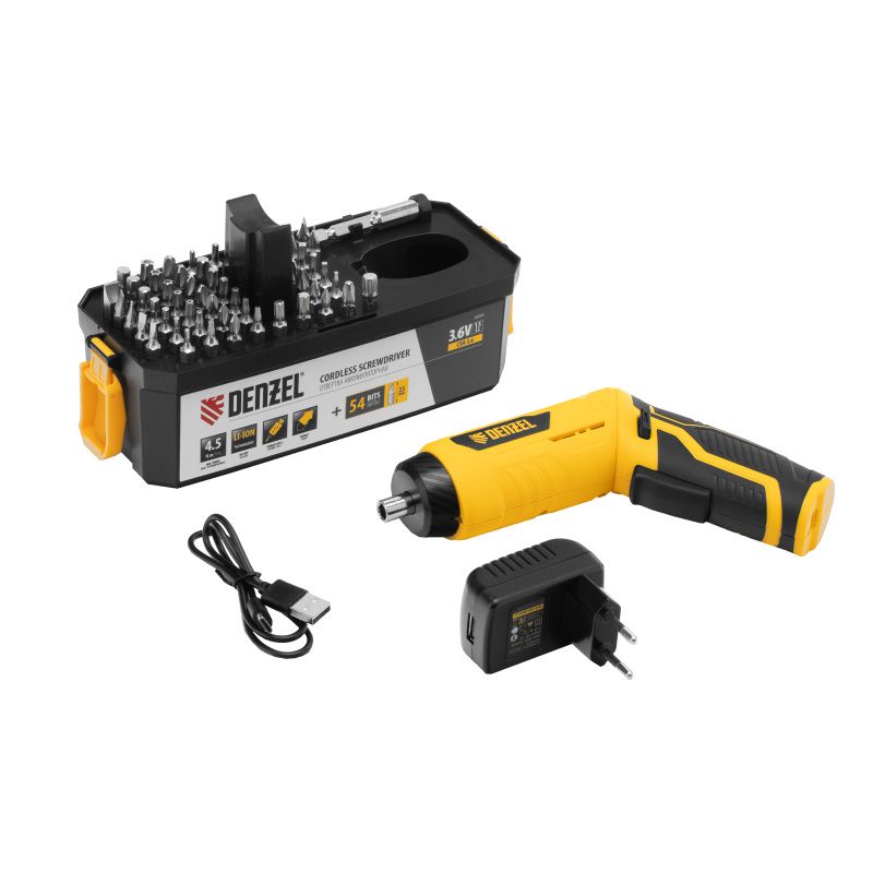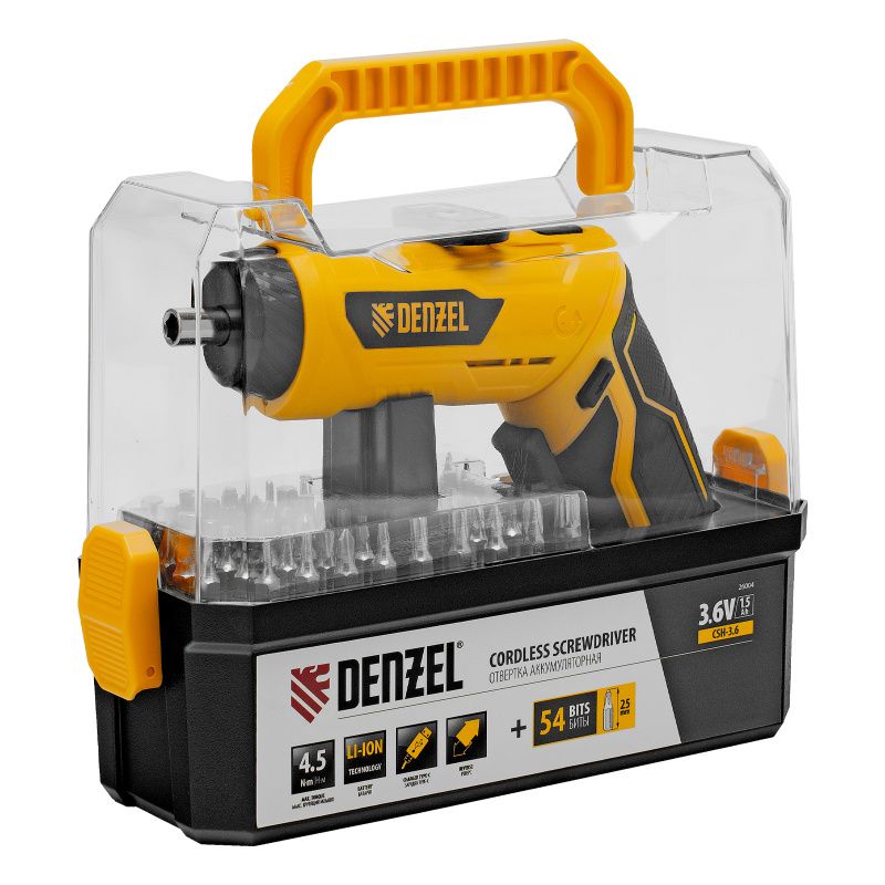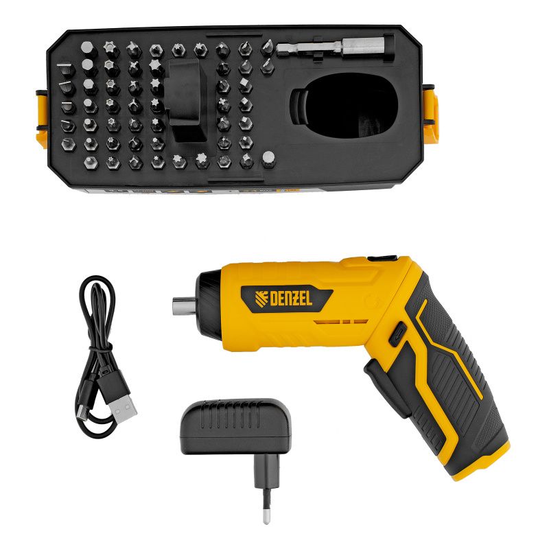 Отвертка аккумуляторная Denzel CSH-3.6, 54 биты, Li-Ion, 3,6 В, 26004