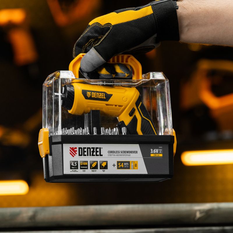 Denzel заботится о качестве своих инструментов, чтобы вы могли выполнять свою работу с максимальной эффективностью. Аккумуляторная отвёртка Denzel CSH-3.6 не станет исключением. Работайте с удовольствием с продукцией Denzel!