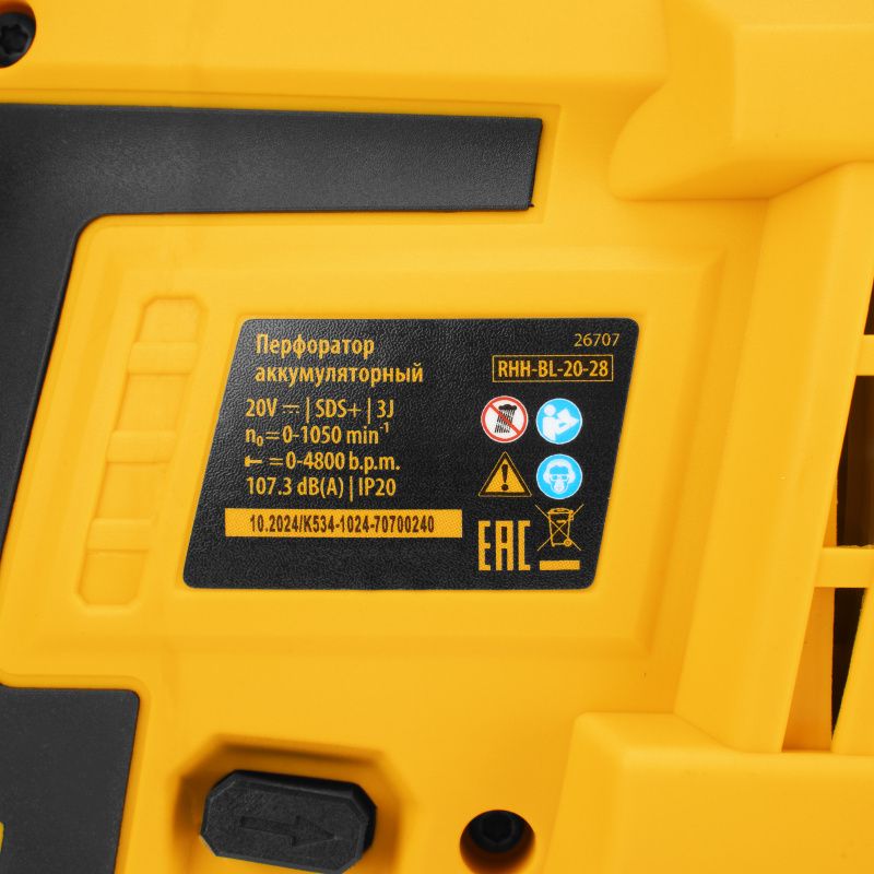 Бесщеточный аккумуляторный перфоратор Denzel RHH-BL-20-28, 3 Дж, Li-Ion, 20 В, 26707