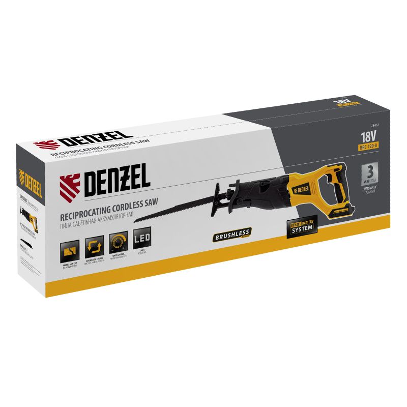 Пила сабельная аккумуляторная бесщет Denzel BRC-120-0, 28461