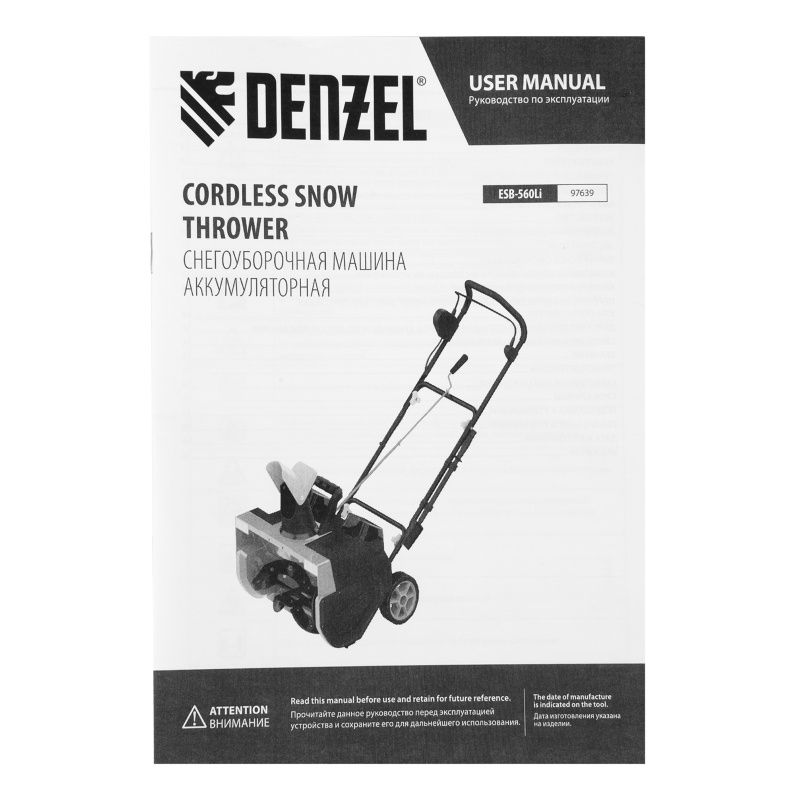 Снегоуборочная машина аккумуляторная Denzel ESB-560Li, 97639