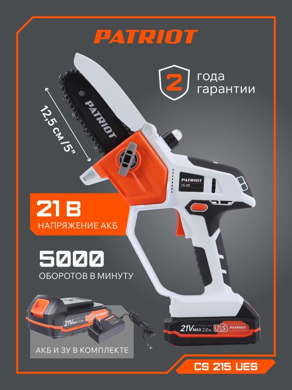 Ищете надёжный и мощный инструмент для ухода за садом и дачей? Тогда цепная аккумуляторная минипила PATRIOT CS 215 UES — то, что вам нужно! Этот инновационный инструмент от известного бренда PATRIOT поможет вам быстро и легко справиться с любыми задачами по обрезке деревьев, распилу древесины и другим работам.
