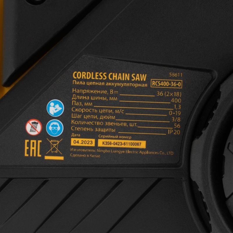 Цепная пила аккумуляторная Denzel RCS400-36-0 бесщеточная, 58611