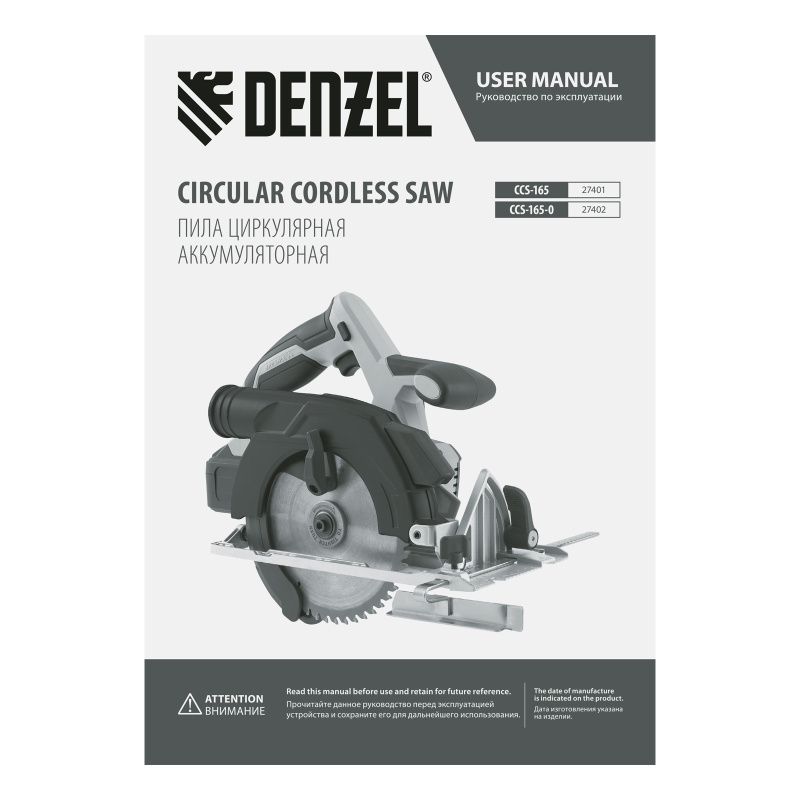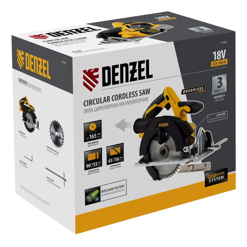 Пила циркулярная аккумуляторная бесщет. Denzel CCS-165-0, 27402