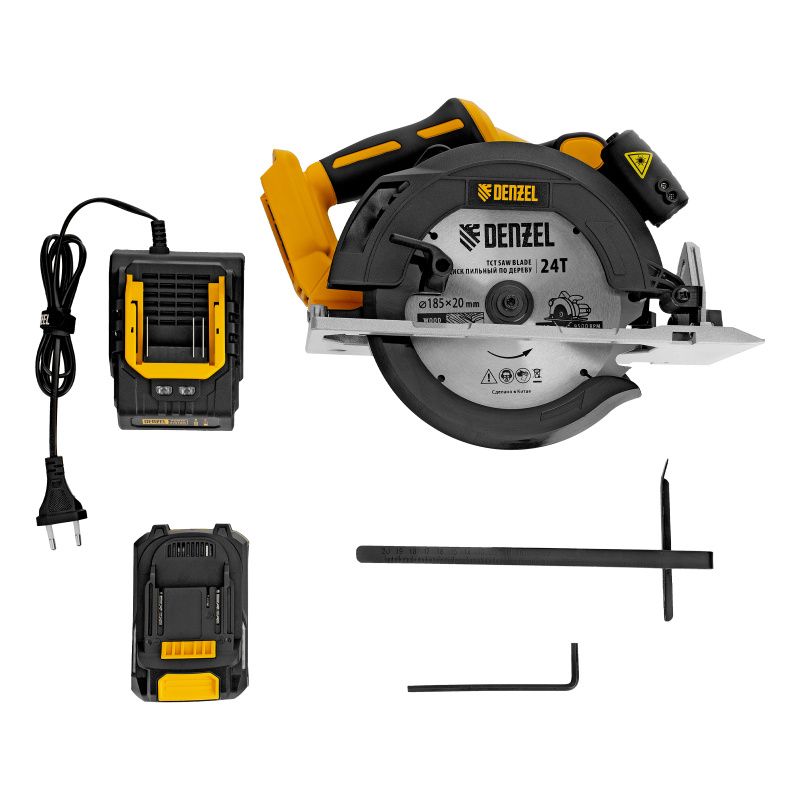 Пила циркулярная аккумуляторная бесщеточная Denzel CCSH-BL-20-185, 27409
