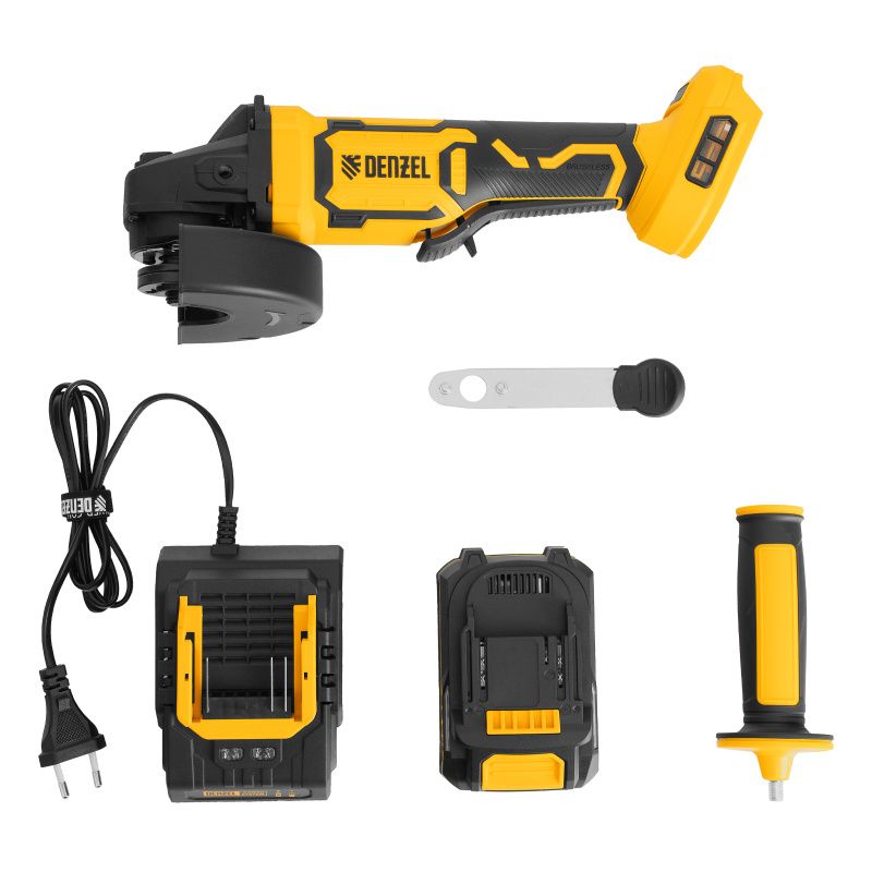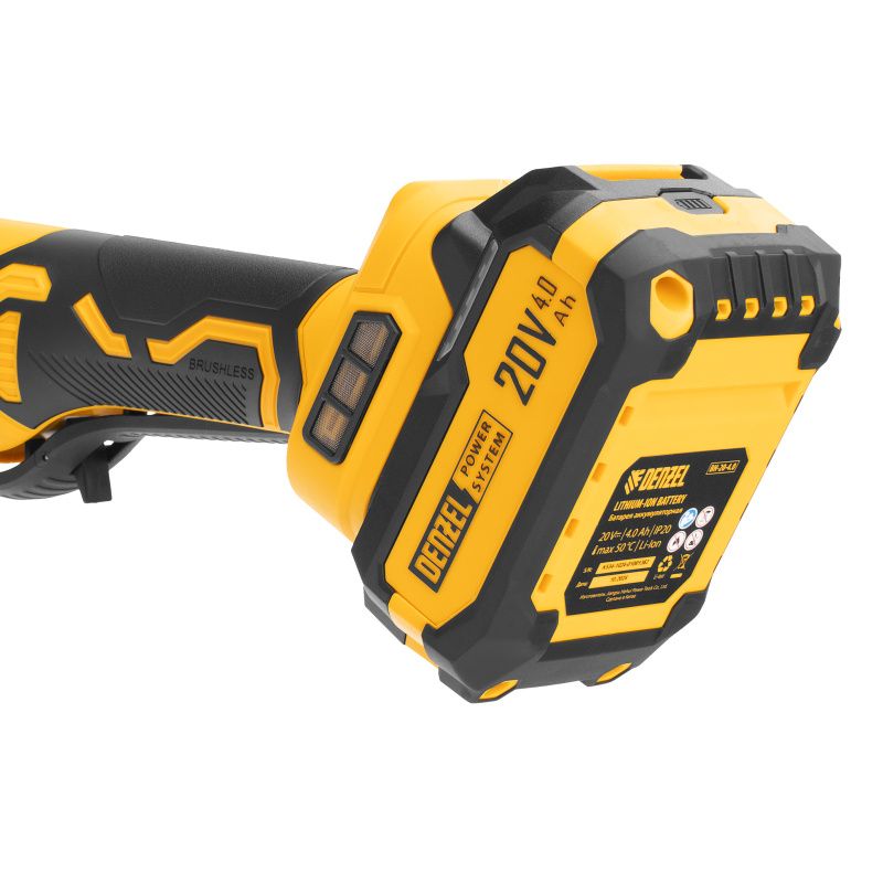 Бесщеточная аккумуляторная угловая шлифовальная машина Denzel AGH-BL-20-125, Li-Ion, 20 В, 27010