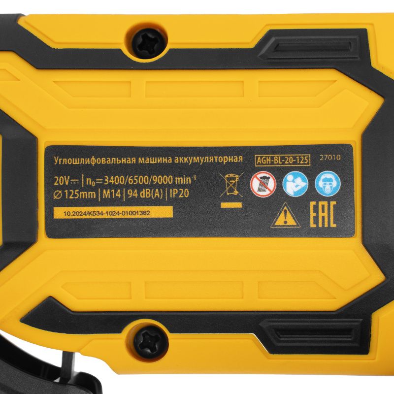 Бесщёточная аккумуляторная угловая шлифовальная машина Denzel AGH-BL-20-125, 27010: надёжность и удобство в каждом обороте