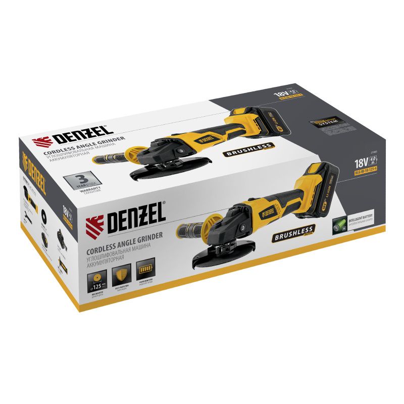 Аккумуляторная машина углошлифовальная Denzel BLG-IB-18-125-4, 27005: мощь и удобство в одном инструменте