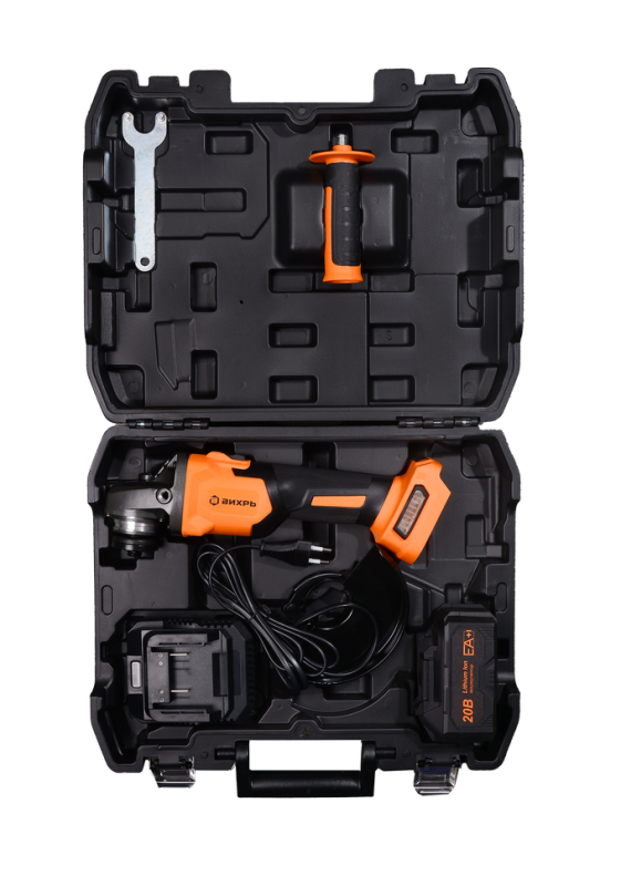 Углошлифовальная машина аккумуляторная АУШМ-125/20Li-R (в комплекте 1 АКБ и ЗУ) ЕА+ в кейсе Вихрь, 72/12/47