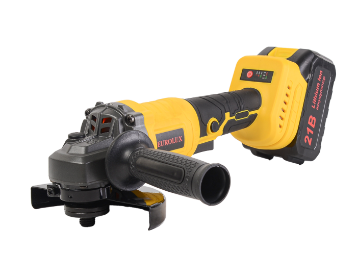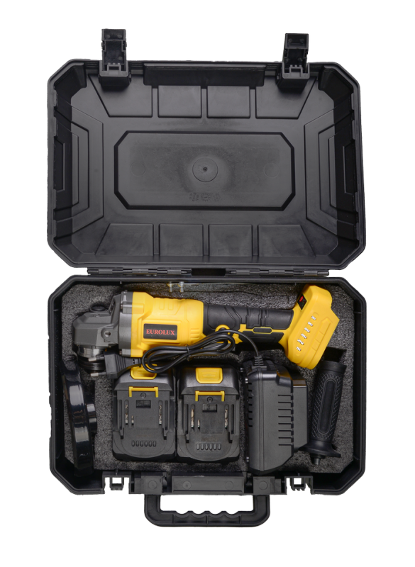 Углошлифовальная машина аккумуляторная Eurolux АУШМ-21Li/125 (в комплекте 2 АКБ и ЗУ) в кейсе, 72/12/49
