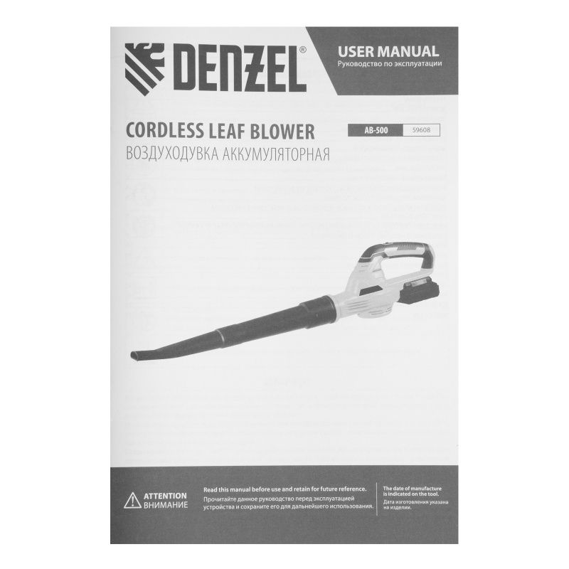 Воздуходувка аккумуляторная Denzel AB-500, 59608
