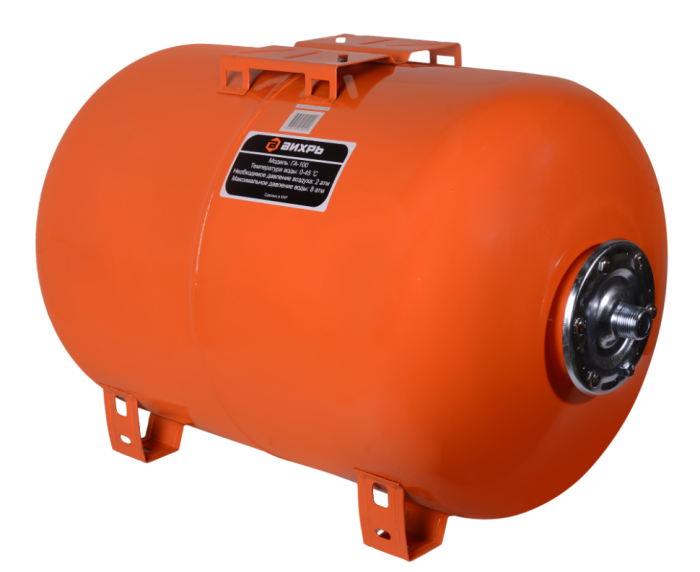 Гидроаккумулятор служит для аккумулирования воды под давлением и сглаживания гидроударов. Используется в системе водоснабжения совместно со скважинным или поверхностным насосом. Он состоит из стального резервуара со сменной мембраной из пищевой резины и имеет пневмоклапан для закачивания сжатого воздуха.В системах водоснабжения используются скважинные и поверхностные насосы. Гидроаккумулятор подбирается в зависимости от мощности и производительности насоса.Для поверхностных насосов: Баки емкостью 24 литра для насосов мощностью до 1 кВт, а мощностью свыше 1 кВт предпочтительны баки 50 литров.Для скважинных насосов: Баки емкостью 24 литра для насосов мощностью до 500 Вт, баки емкостью 50 литров для насосов до 1 кВт, баки емкостью 100 литров для насосов до 1,5 кВт.Комплектация: