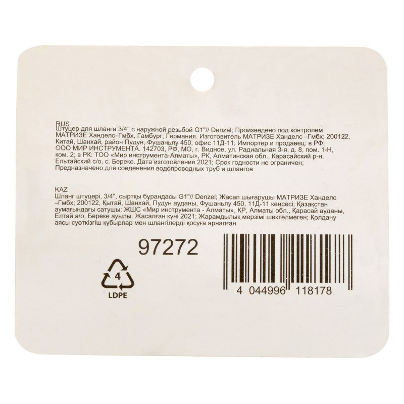 Штуцер для шланга 3/4" с наружной резьбой G1" Denzel, 97272