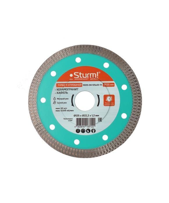 Алмазный диск 125x22,23 ТОНКИЙ, Y-тип, сухой рез, Sturm, 9020-04-125x22-Yt