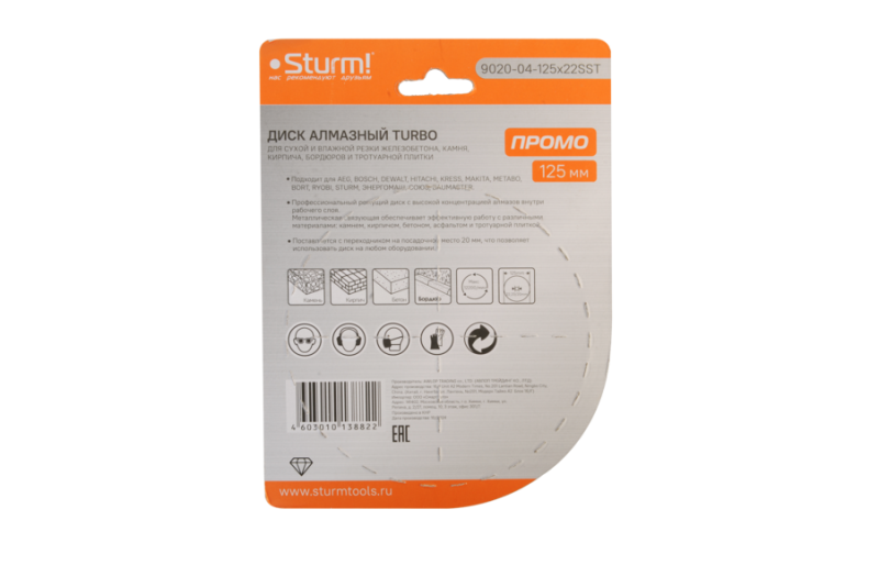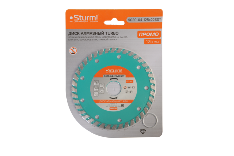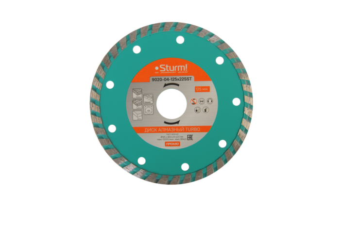 Алмазный диск, сухая/влажная резка, "Турбо" 125мм ПРОМО Sturm, 9020-04-125x22SST