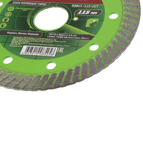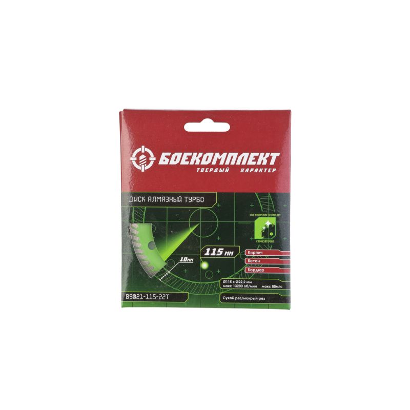 Алмазный диск 115x22,23 ТУРБО, сухой рез, БОЕКОМПЛЕКТ, B9021-115-22T