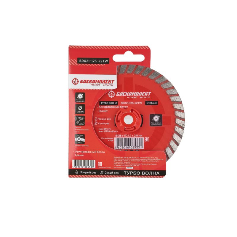 Алмазный диск 125x22,23 ТУРБО ВОЛНА, сухой рез, БОЕКОМПЛЕКТ, B9021-125-22TW