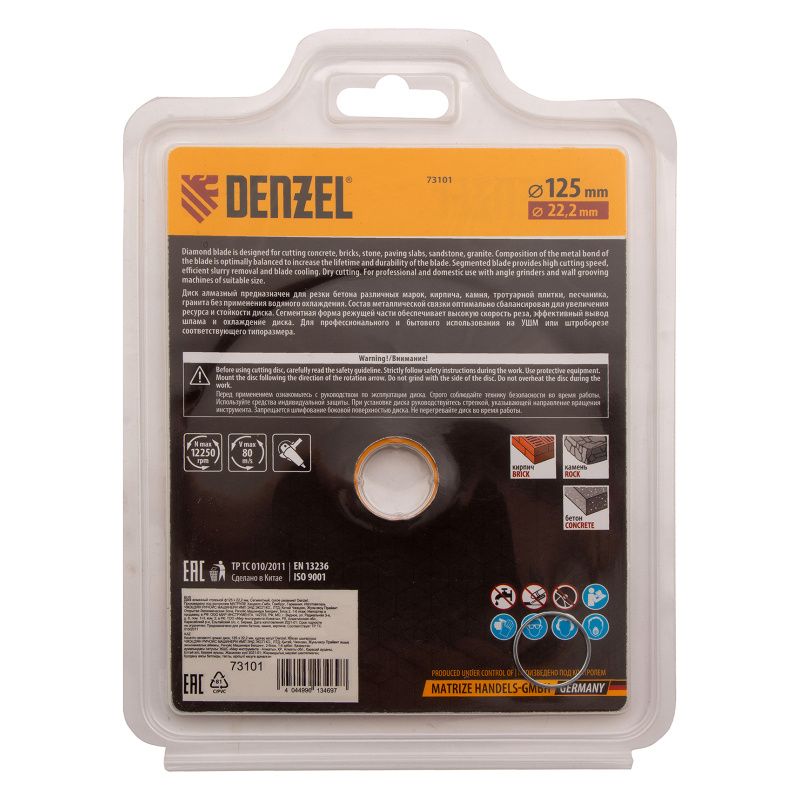 Диск алмазный, отрезной сегментный, 125 х 22.2 мм, сухая резка Denzel, 73101