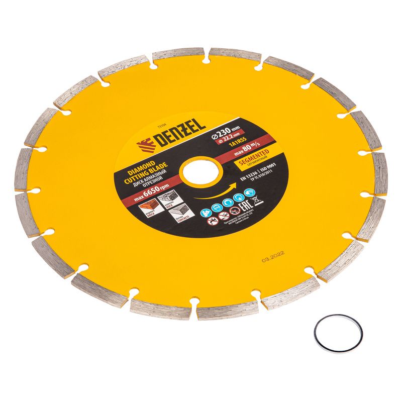 Диск алмазный, отрезной сегментный, 230 х 22.2 мм, сухая резка Denzel, 73104