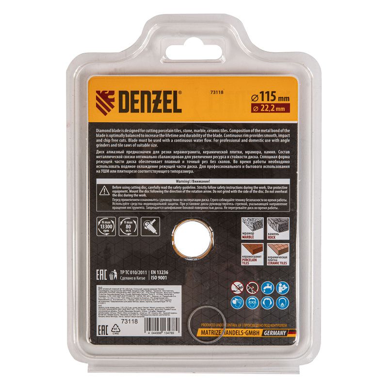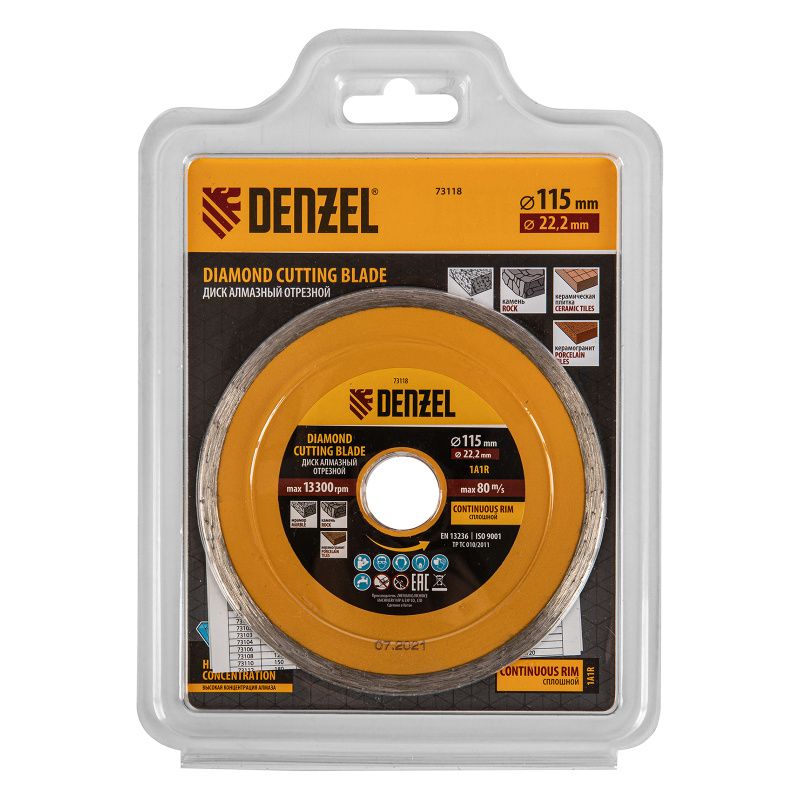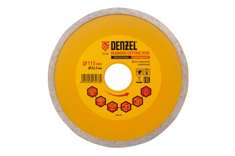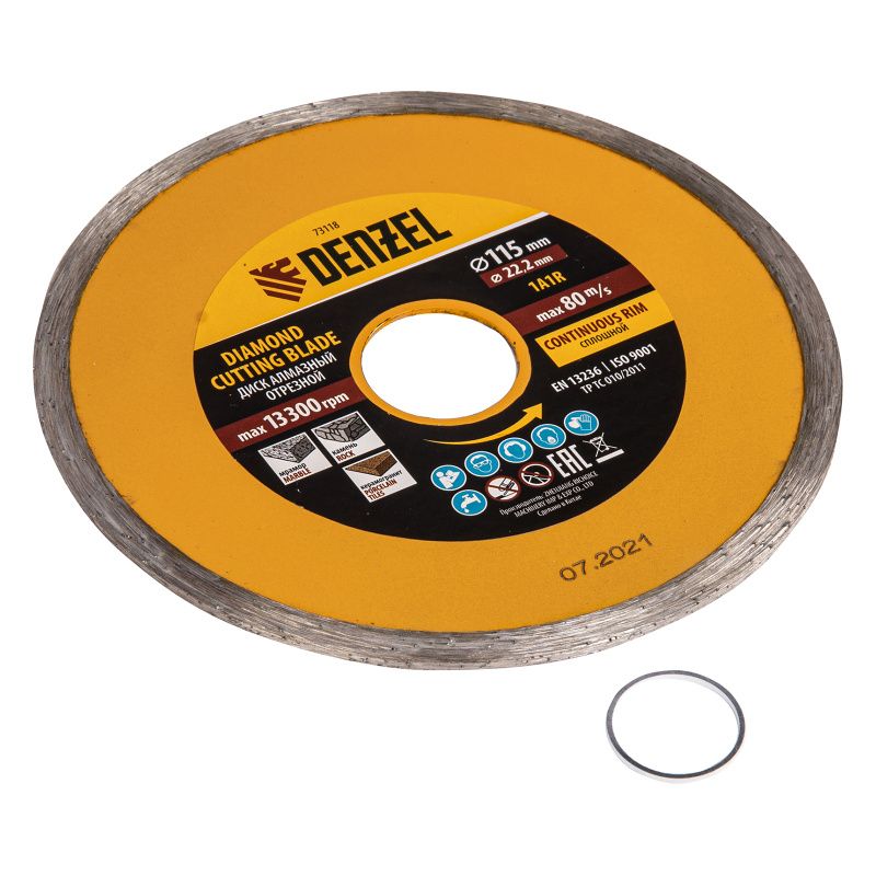 Диск алмазный, отрезной сплошной, 115 х 22.2 мм, мокрая резка Denzel, 73118