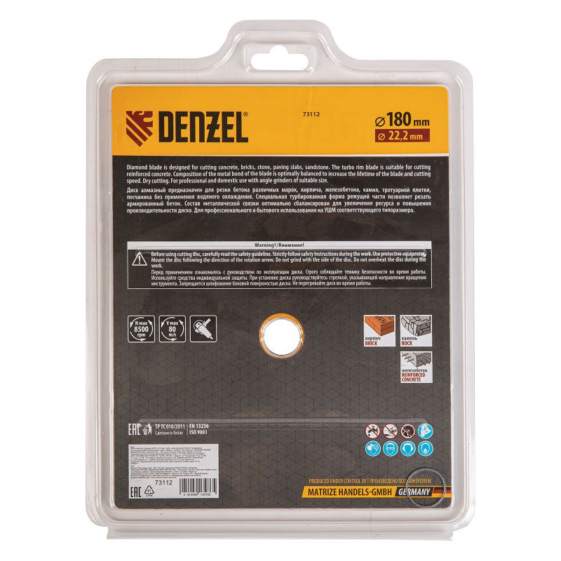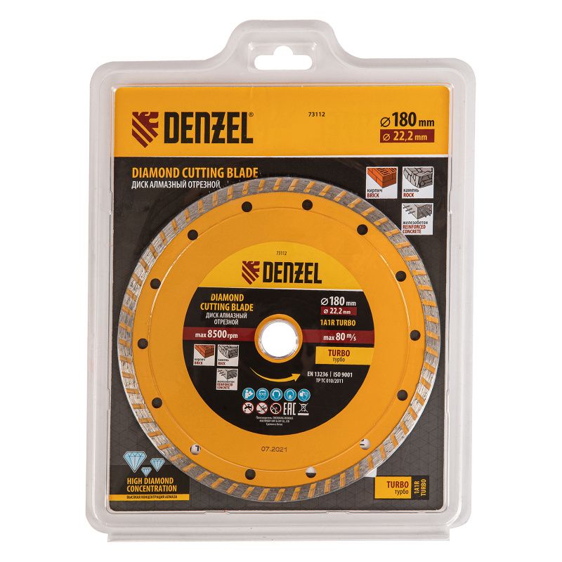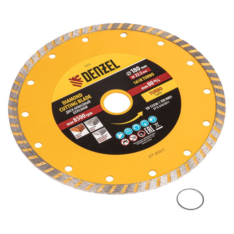 Диск алмазный, отрезной Turbo, 180 х 22.2 мм, сухая резка Denzel, 73112