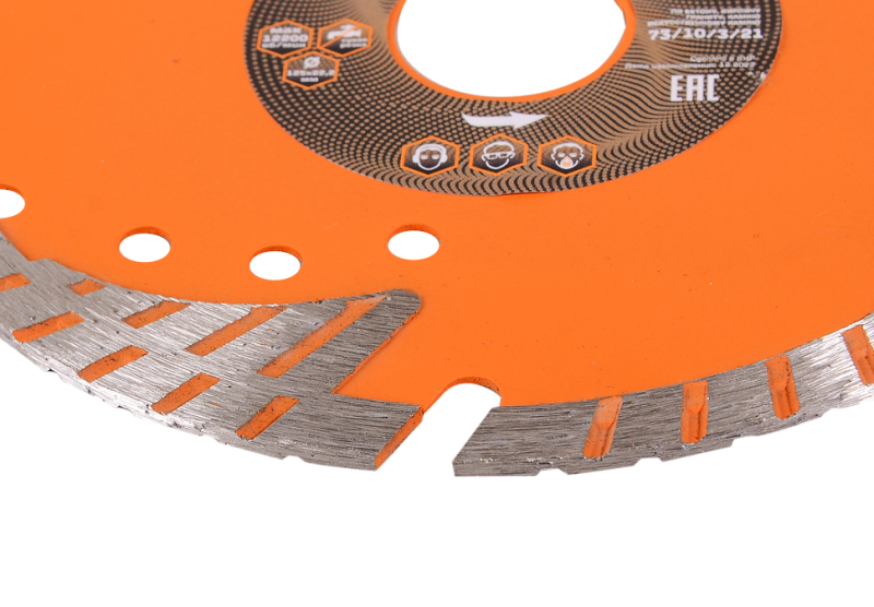 • Защитные сектора диска обеспечивают защиту режущего слоя от бокового износа.• Турбированная форма, обеспечивает плавное безударное резание, с эффективным охлаждением.• Продолжительный ресурс работы обеспечивается высокой концентрацией алмазного порошка в оптимально подобранной связке.• Предназначены для резки «сухим методом» изделий из твердых материалов: армированного бетона, железобетона, камня, мрамора, шлакоблоков, гранита и пр.