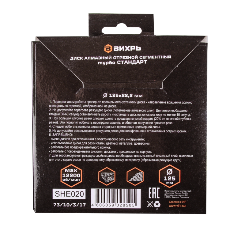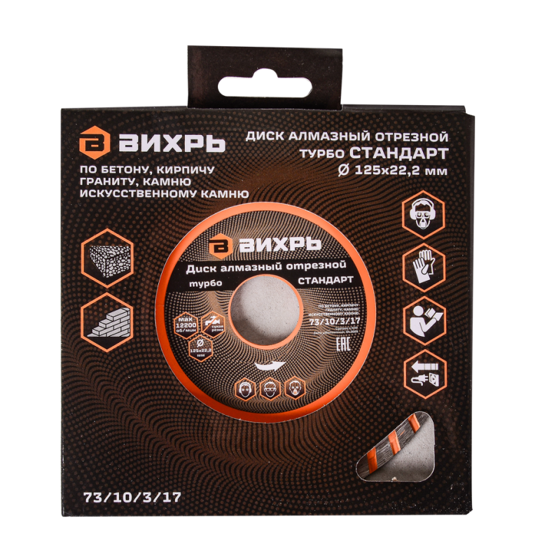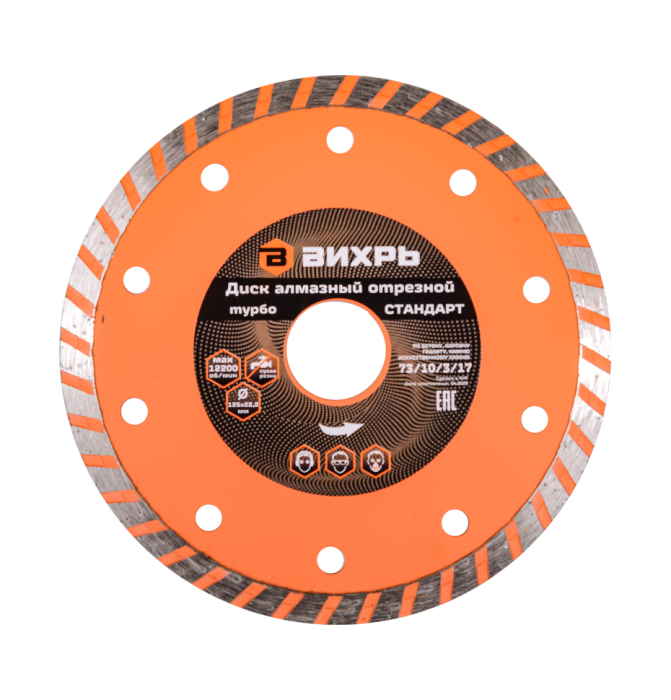 Диск алмазный отрезной Турбо СТАНДАРТ, 125 х 22,2 мм, сухая резка Вихрь, 73/10/3/17