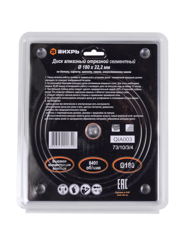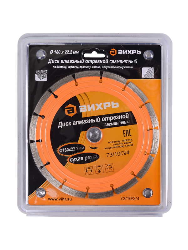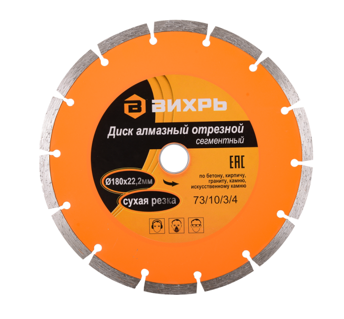 Диск алмазный отрезной ВИХРЬ 180х22,2 мм, 73/10/3/4