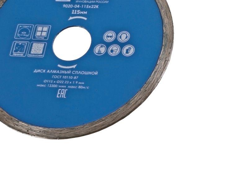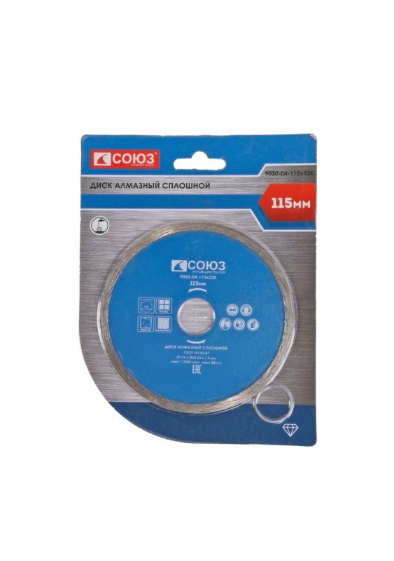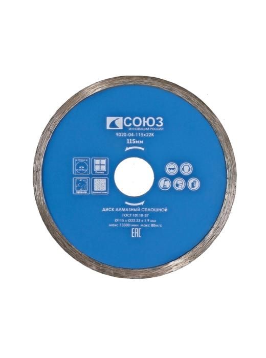 Алмазный диск со сплошным алмазным слоем, 115х22,2, Союз, 9020-04-115x22K